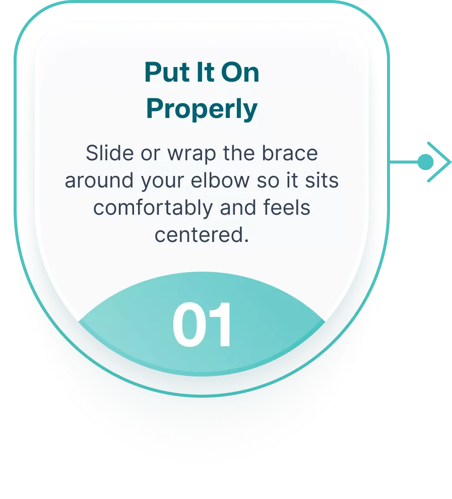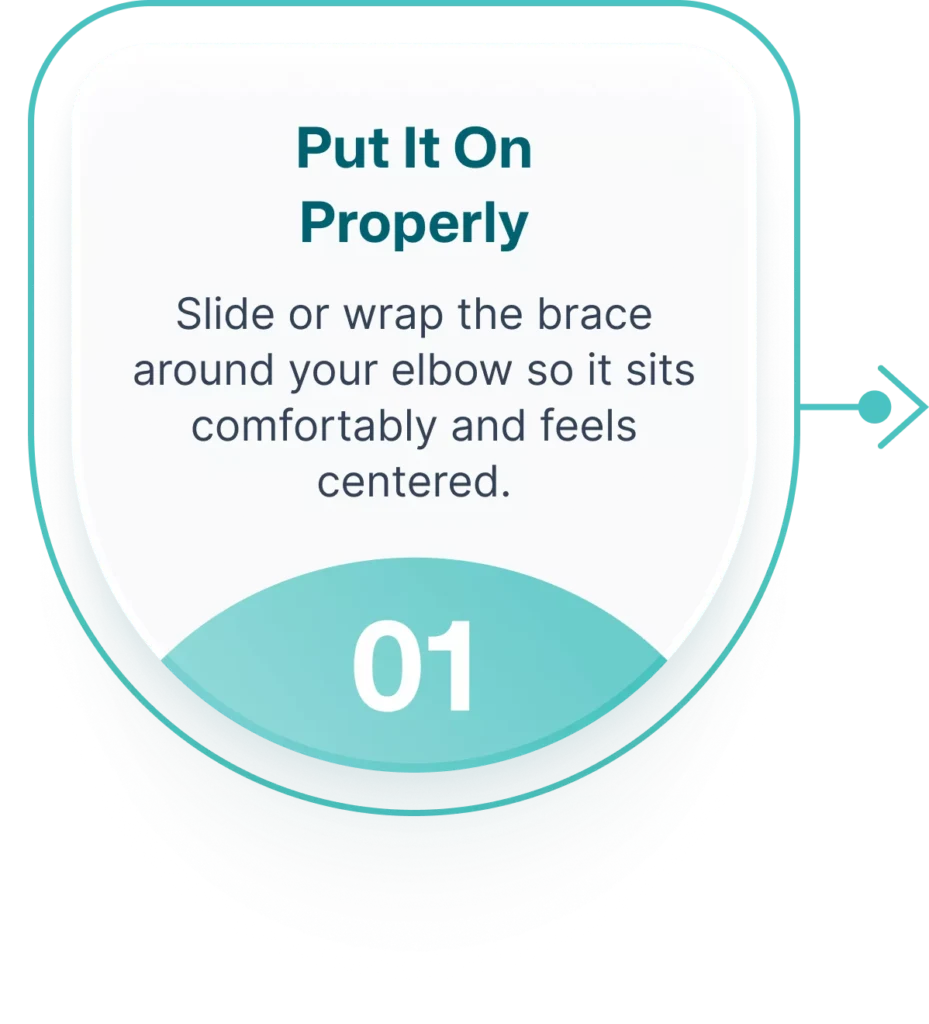 Follow these simple steps to wear your elbow brace properly and maintain consistent comfort and support throughout your daily routine.